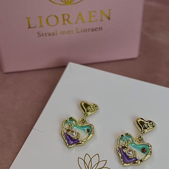 Gemaakt van hoogwaardig staal, versierd met kleurrijke emaille en fonkelende parels. Deze sierlijke oorbellen zijn perfect om eenvoudige outfits een charmante en speelse touch te geven, ideaal voor dagelijks gebruik of speciale gelegenheden