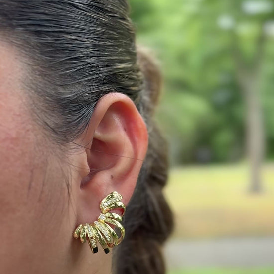 Gemaakt van hoogwaardig staal in gouden kleur en versierd met fonkelende zirkonen. Het veelzijdige ontwerp past perfect op het oor en zorgt voor een elegante uitstraling bij elke gelegenheid – van dagelijks gebruik tot speciale momenten. 💎